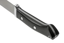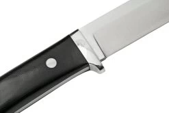 El Bark River Classic Drop Point Hunter es la interpretación de Bark River de los famosos cuchillos Drop Point hechos por Bob Loveless. Un cuchillo de caza perfecto, según muchos. El tamaño es el mismo, sólo el filo ha cambiado drásticamente. Tiene un afilado convexo como corresponde a Bark River. El resultado es un filo más fuerte y afilado. El protector de dedos (recorte) evita que el dedo resbale y acabe en el filo. El mango tiene una forma ergonómica. Curvas donde sea necesario y partes planas en las que los dedos puedan descansar cómodamente en diferentes posiciones.