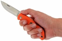 Esta navaja es polivalente y es ideal para uso en exteriores. El cierre trasero y la hoja de acero Sandvik 12C27 de primera calidad ofrecen la solidez y la fiabilidad que se espera de un cuchillo de este tipo. La hoja está dotada de prácticas ranuras para un buen agarre. No es muy sofisticada, pero es perfecta para el uso diario. La hoja no se puede abrir con una sola mano, por lo que también se puede utilizar en países donde la legislación lo prohíbe. Y en la práctica esto no supone una desventaja.