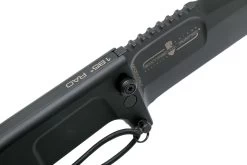 La RAO es una navaja plegable táctica compacta con una hoja resistente y pesada y un sistema de bloqueo muy seguro, asistido por un mecanismo extra seguro que convierte la navaja en un verdadero cuchillo de hoja fija. Longitud de la hoja: 12 cm. Acero Bohler N690 (58HRC). Funda compatible con M.O.L.L.E. sistema militar.