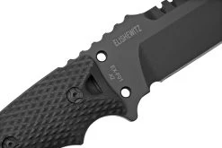 El Hogue EX-F01 Tanto es un robusto cuchillo fijo. La hoja está hecha de acero para herramientas A2. Un tipo de acero que sólo es parcialmente resistente a la corrosión. Afortunadamente, el revestimiento KG 2400 GUN-KOTE protege el cuchillo de la oxidación. El filo, sin embargo, necesita un poco de atención de vez en cuando. Por suerte, esto se compensa con creces con la dureza de este tipo de acero. Por lo tanto, es un tipo de acero muy popular para los cuchillos de combate.