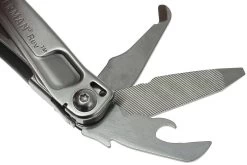 La Leatherman Rev es una multiherramienta de acero inoxidable pequeña pero totalmente funcional. La hoja de acero 420HC está bloqueada por un cierre linerlock, pero las otras herramientas no están bloqueadas. La Rev tiene un sólido clip de bolsillo para que nunca la pierdas.