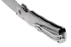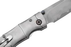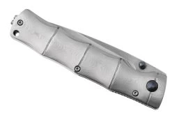 La Mcusta MC-0202G Shinra Maxima Takeri es una navaja Mcusta de gran tamaño y estilo. Perfecta para quienes prefieren cuchillos de caballero ligeramente más grandes. Destaca el impresionante mango de acero de damasco. Este cuchillo está mejorado con lo que Mcusta llama un patrón de bambú. Esto significa, literalmente, que el mango tiene la forma de un trozo de bambú. No solo tiene un gran aspecto, sino que también ofrece suficiente agarre.