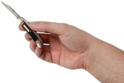 La Old Timer Junior 108OT es una navaja slipjoint económica con mango de polímero. Una compacta tradicional con tres hojas: clippoint, sheepsfoot y navaja. Las hojas se abren con las dos manos y cuando se abren, un slipjoint bloquea la hoja. No hay un bloqueo real, más bien una resistencia. Por ello, estos cuchillos pueden llevarse en muchos lugares.