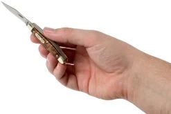 La Old Timer 3″ Middleman 33OTW es una navaja slipjoint económica con mango de Desert Ironwood. Una compacta tradicional con tres hojas: clippoint, sheepsfoot y navaja. Las hojas se abren con las dos manos y cuando se abren, un slipjoint bloquea la hoja. No hay un bloqueo real, más bien una resistencia. Por ello, estos cuchillos pueden llevarse en muchos lugares.