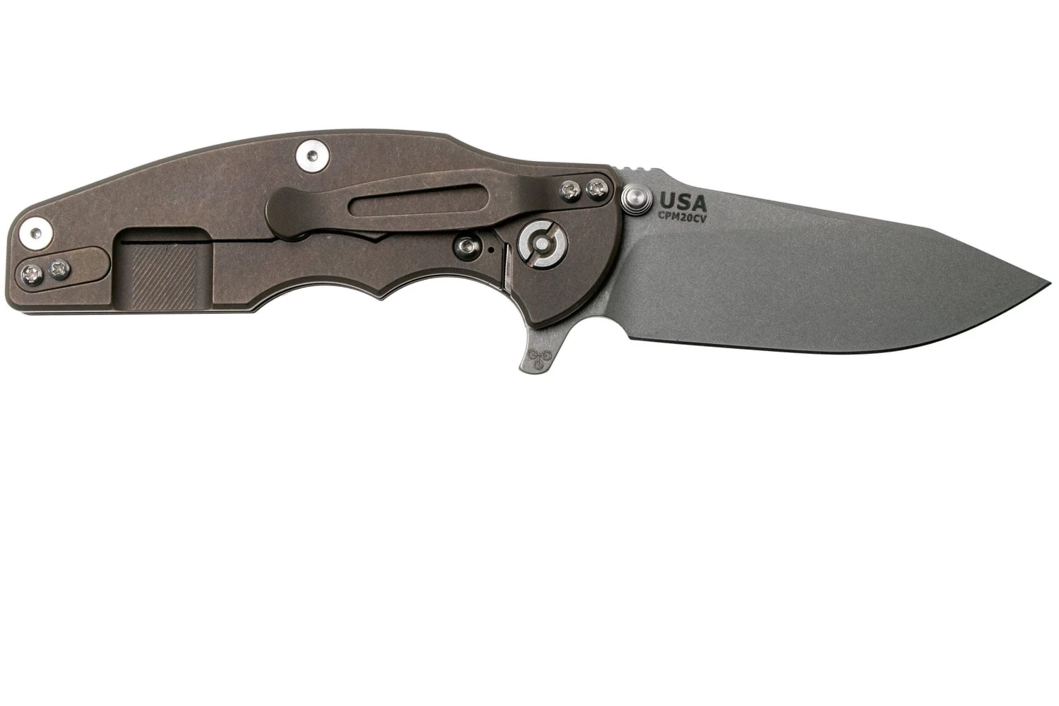 Rick Hinderer Jurassic Slicer Battle Bronze Black G10 CPM 20CV Navaja